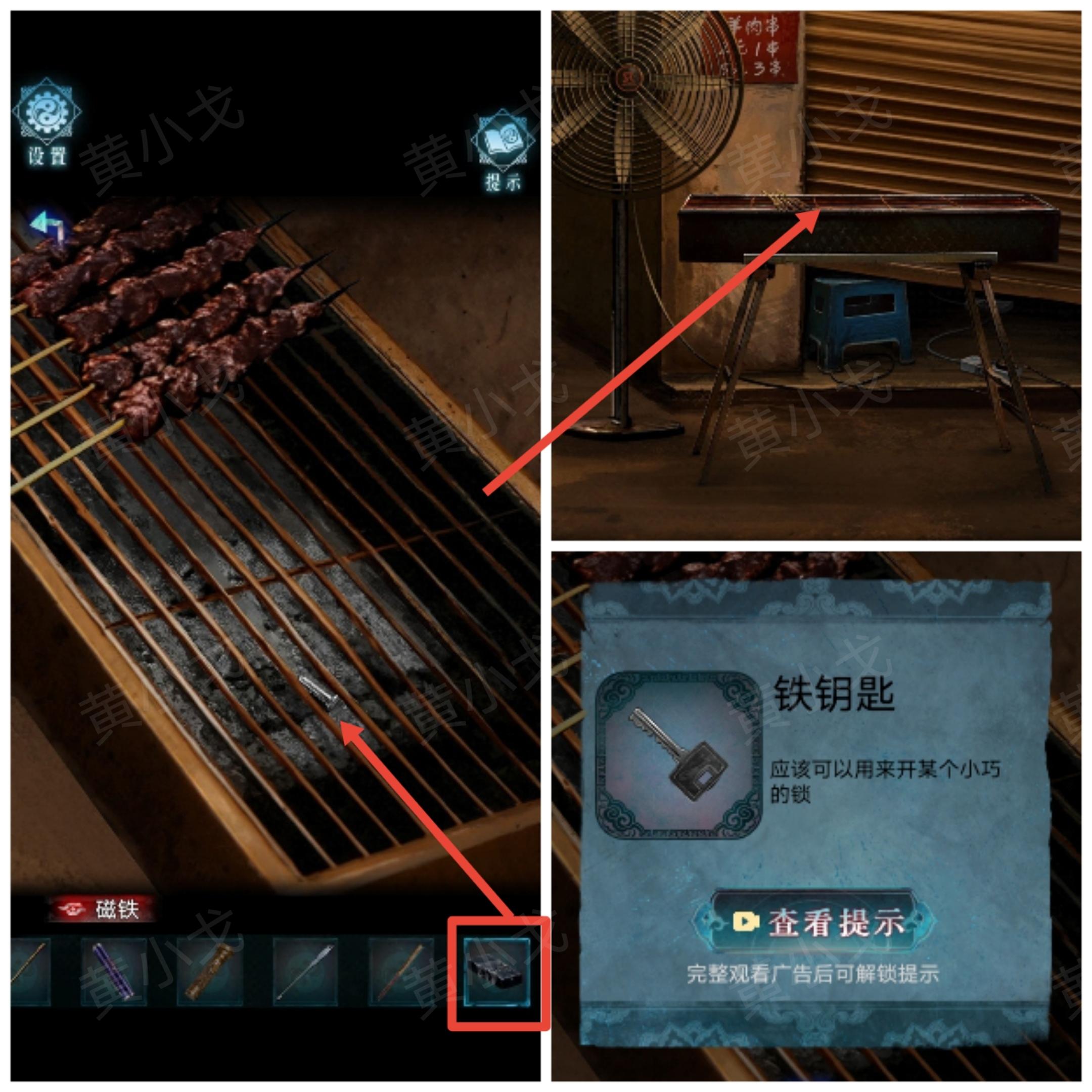 2.点击烤炉,用【磁铁】吸出【铁钥匙】