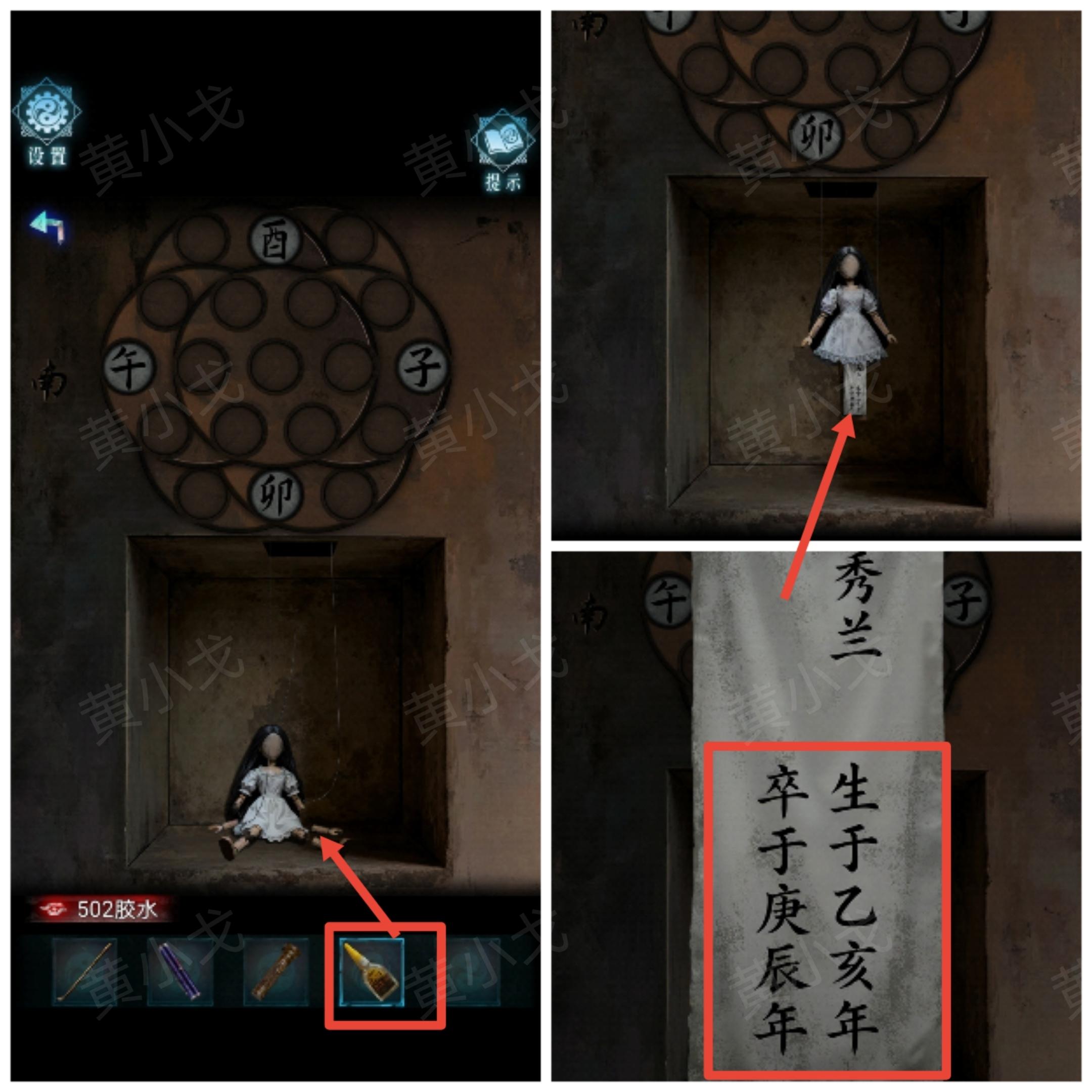 16.打开暗格,用【502胶水】将木偶的四肢粘起来;查看出现的布条,获得线索