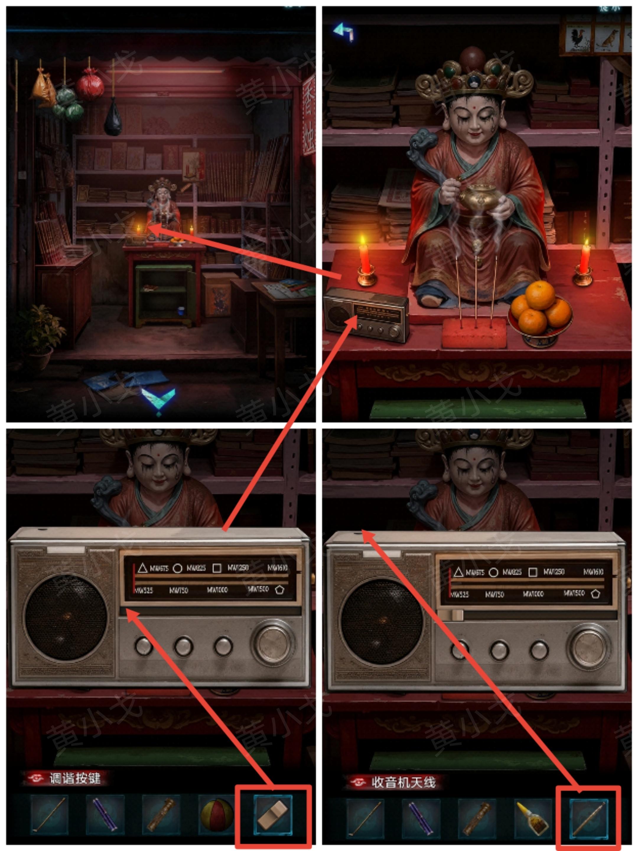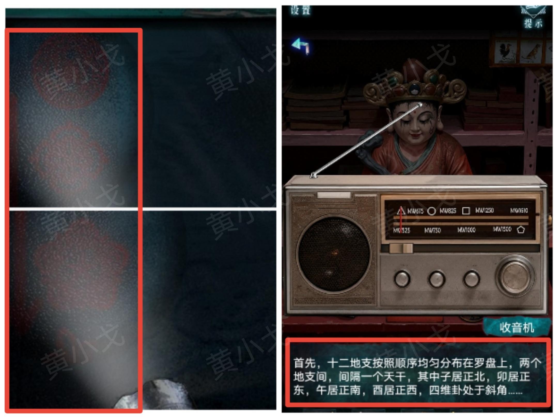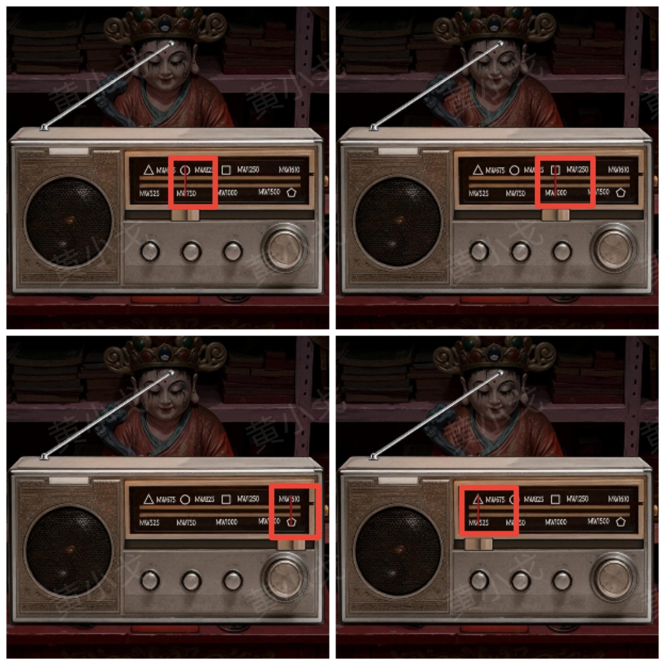 13.根据巷子窗户内的窗花形状线索,按顺序调频;播放收音机,获得线索