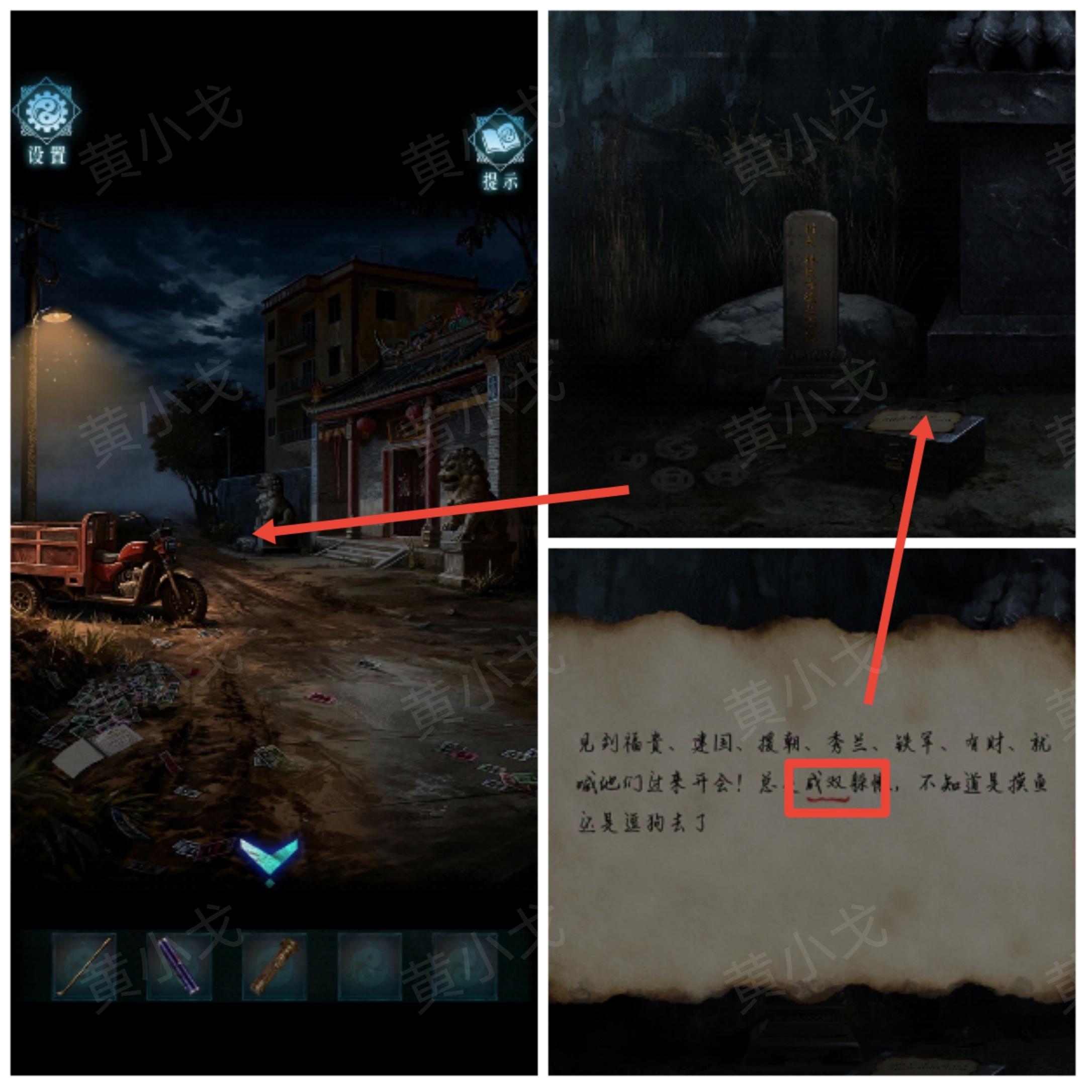 ,结合纸张和祠堂里的布条上的线索,调整密码锁