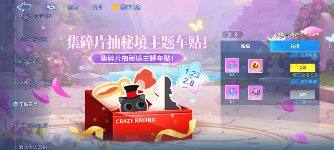 好奇的猫猫跳上墙壁,看到花园内未完的棋盘,仍温的茶杯,又被树边的小蘑菇吸引走注意。1月23日起,全新赛季主题车贴活动上线,完成任务即可收集魔法碎片兑换【秘境车贴盲盒】,猫猫头车贴、茶杯车贴、蘑菇车贴、国际象棋车贴等你开启!
