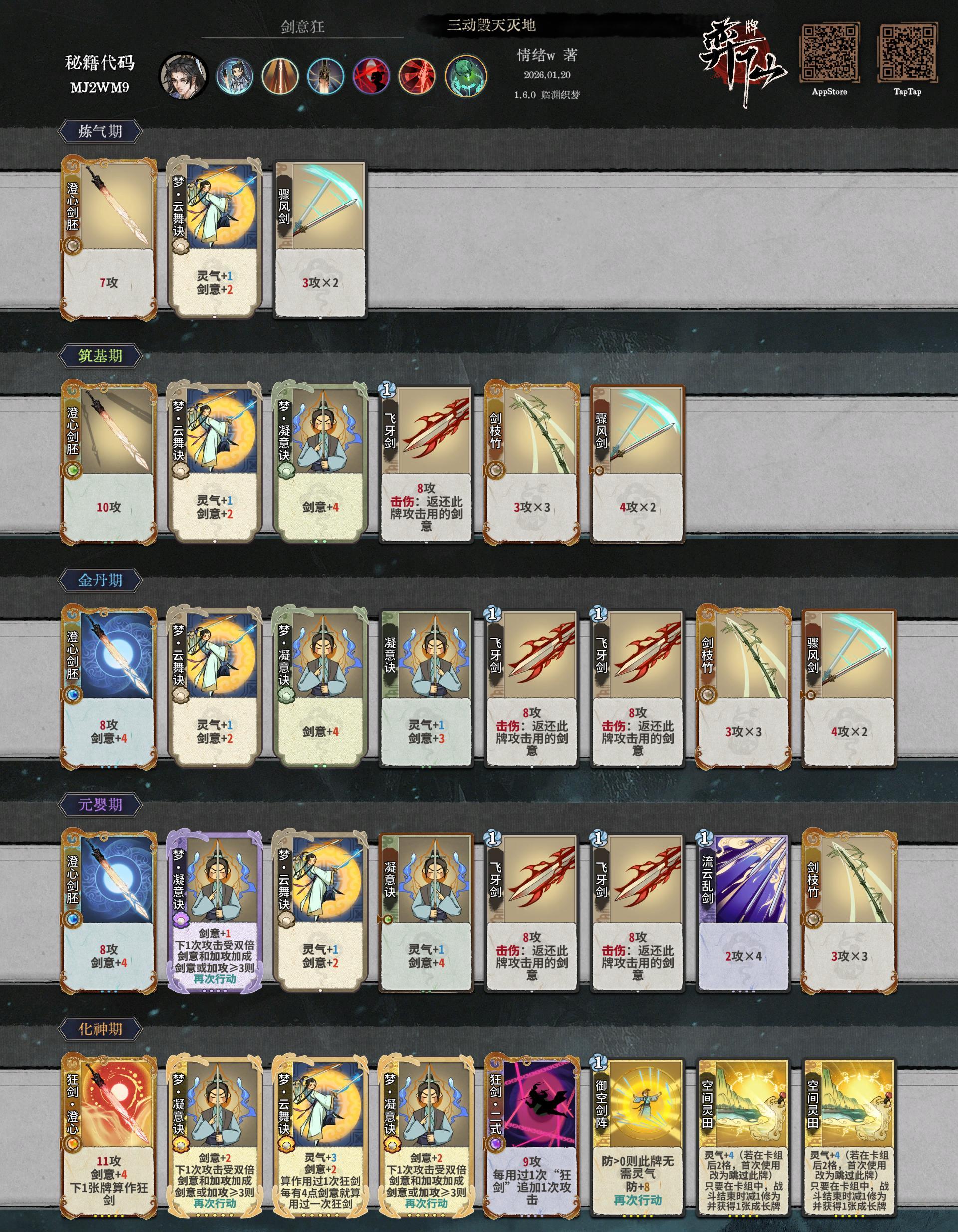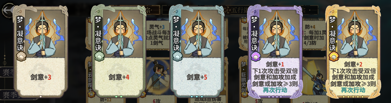 前中后期都可以根据剑意来搭,后期不来相对应的狂剑牌,也可以转成剑意流派。