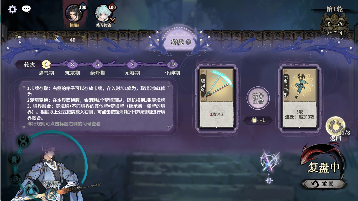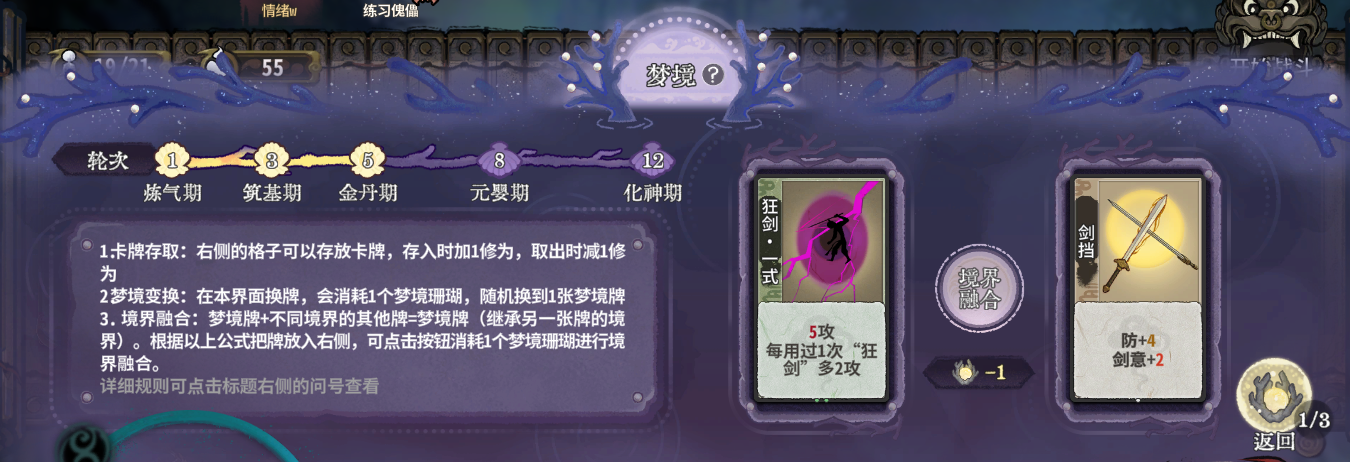 小技巧:我们第一轮没用完的牌可以存在梦境里提高修为。