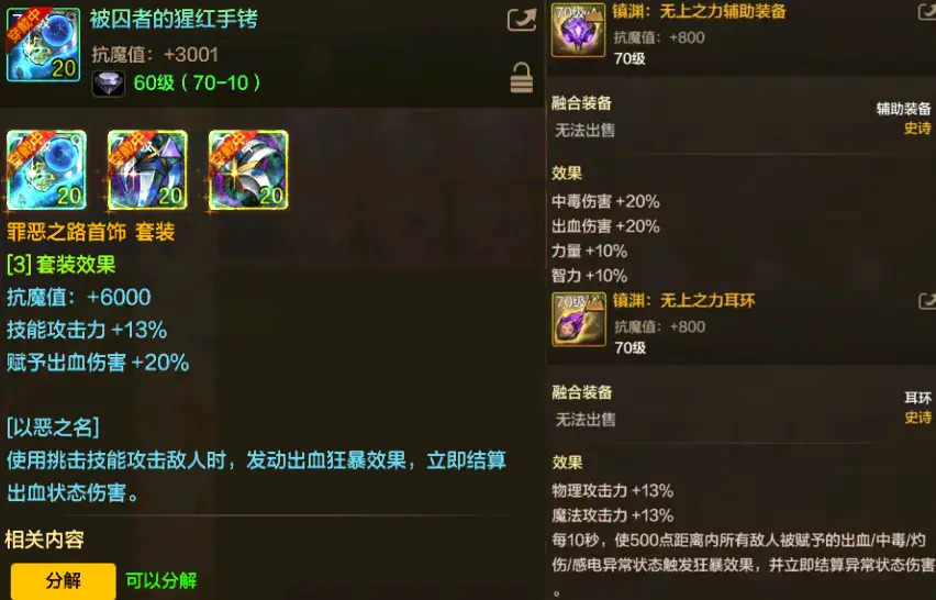 “罪恶套”作为新版本晋升的“最强爆发首饰”,可以说只要你不走镇魂曲路线,那么就只推荐这一套首饰;