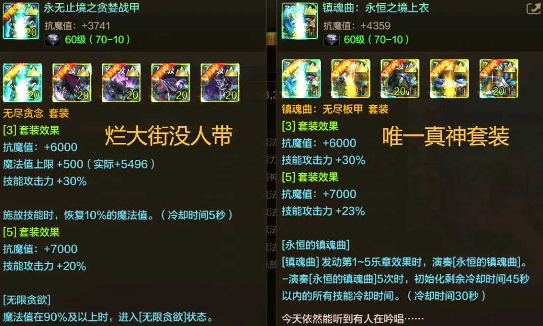 这应该是毫无争议的,不管是隔壁的“真学套”还是“幽魂套”,在如今的“镇魂曲”面前都不够看,可以算得上“唯一真神”!