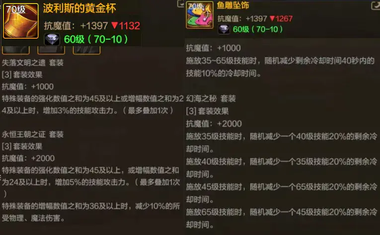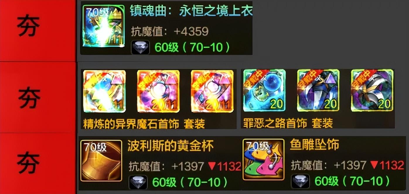 到这里呢大家想要的“版本答案”也就出炉了:镇魂曲(真学套)+精炼套(罪恶套)+黄金杯/鱼雕套!