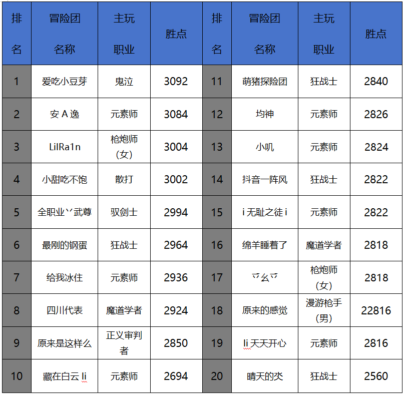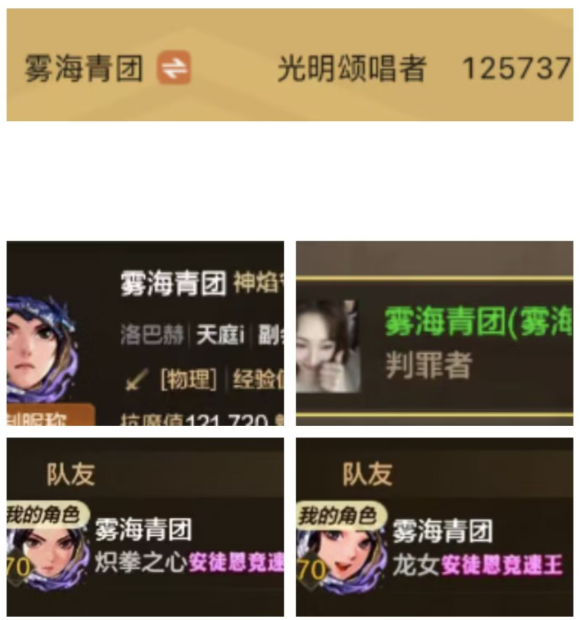 本期排行榜中的四姨、奶妈、龙女这个职业的伤害记录,都是由同一名玩家完成的,在这周更新后,玩家“雾海青团”就利用转职书分别转职成了女圣职者的5个职业,不过由于他的打造还是以魔法为主,转职成团长和女蓝拳两个物理职业,是比较吃亏的,在这周的最后两天被同职业的其他大佬将纪录反超了,最终达成了四姨、奶妈、龙女三职业的同时在榜纪录,团子不愧是团子