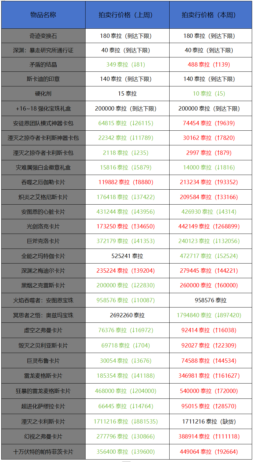 另外受新职业影响,并且在困难团产出宝珠的情况下,毕业附魔卡价格依旧涨疯了,不少附魔的价格甚至出现了翻倍的增长,不建议大家在近期购买毕业附魔,可以多打下困难团,看看有没有账绑的宝珠,实在没遇到,可以在下个月看下价格再进行购买