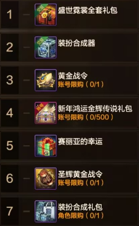 其余的商城道具热度与这俩比差距就非常大了,最出乎意料的是,在春节版本商城道具竞争如此激烈的情况下,赛利亚的幸运竟然能再次冲到榜单,较大原因还是因为武器装扮的属性改版,而目前拍卖行出售价格还是比较贵的,不少玩家因此选择了自己开钥匙,直接出的概率还是比较低的,建议玩家不要着急,靠活动任务赠送的钥匙也是能抽到的
