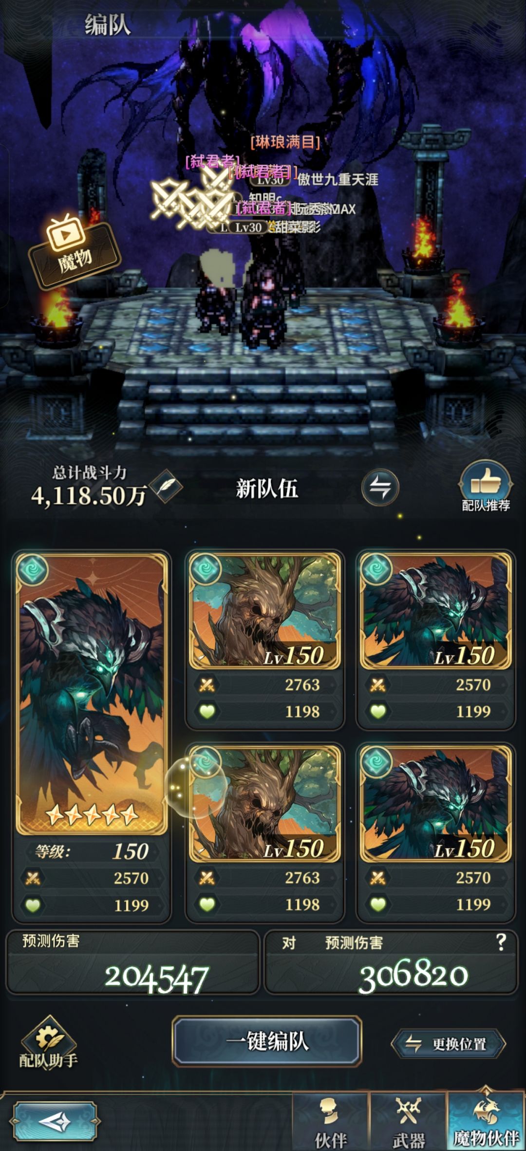 魔物选择 当队伍中有火的时候魔物可以选择三个鸟 二个树 确保输出最大化 没火的时候选择加生命的魔物或者欲望泉加土老王