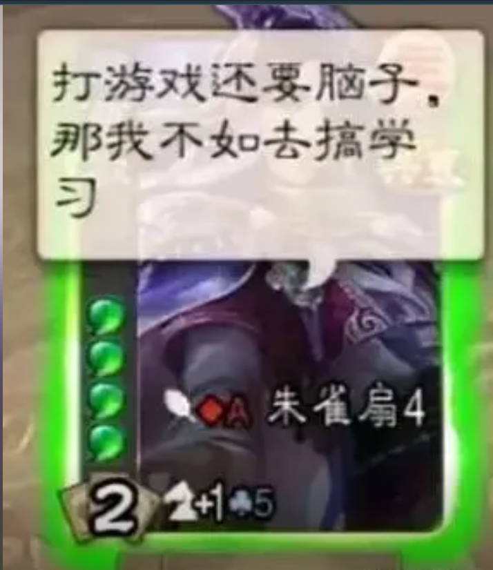 牌局记录实在是太模糊了,比如袁绍发动了百万雄兵,却不写袁绍转化了几张牌,只能通过盯着袁绍的摸牌动画来判断,比如典韦打了个暴击,记录里却不写因此技能多打了几点伤害,牌局记录里没有写明技能效果造成了什么影响,新手在学习时还要去翻那个很烂很不规范经常出现歧义的技能描述,增加的学习成本是乘法运算而不是加法…………