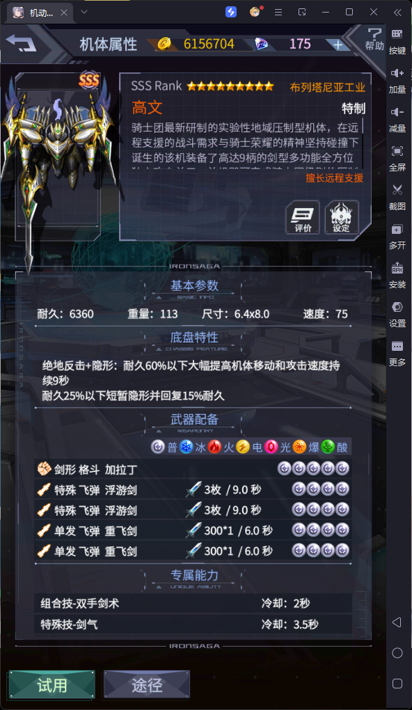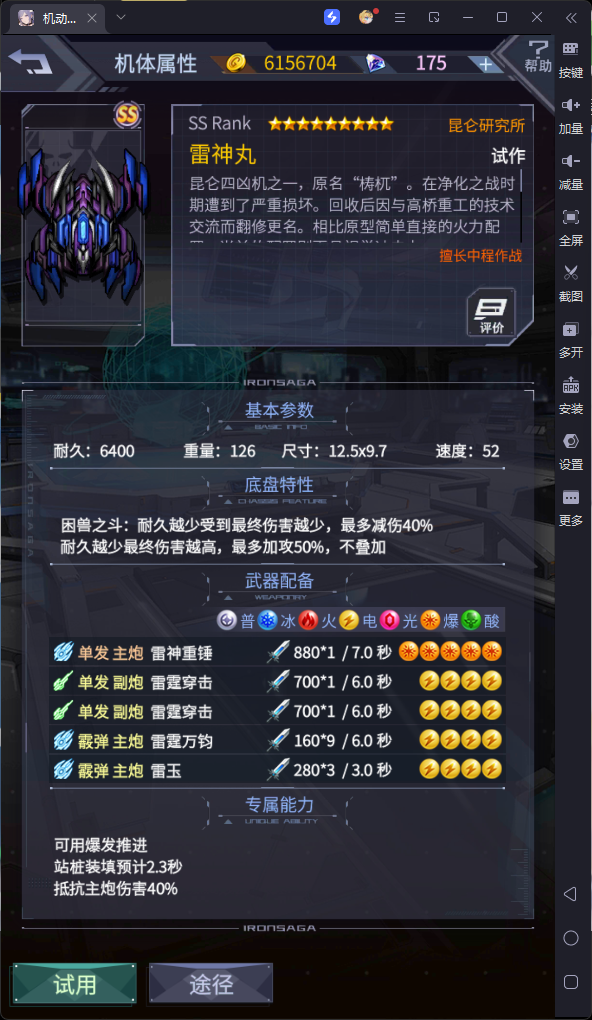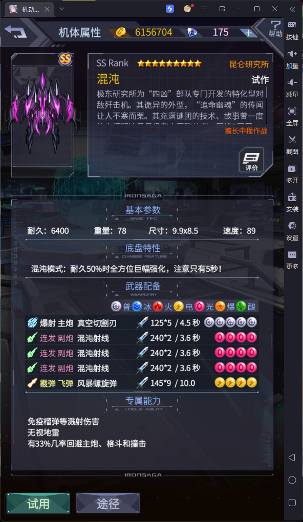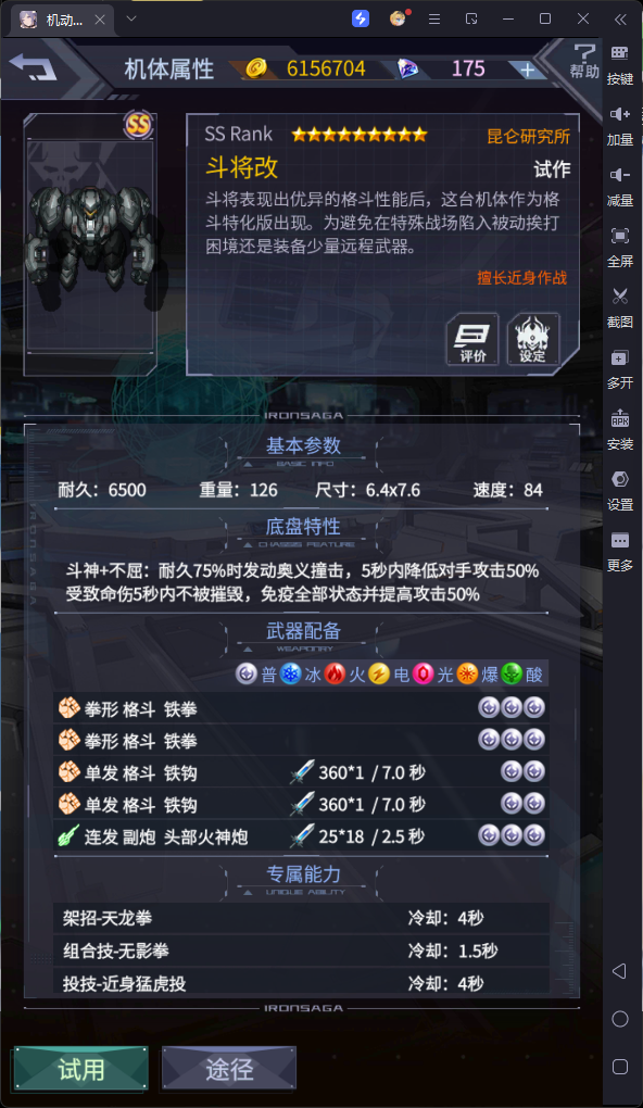 动作和底盘都不错,尤其底盘强制5秒不死,可以当t用