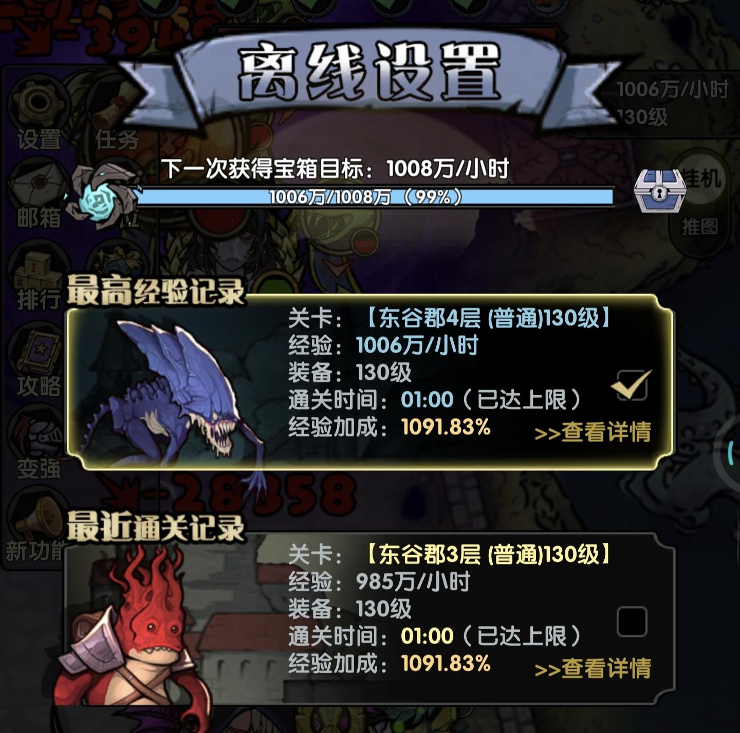 最后就是刷图选择,只刷东谷郡1至4,1能刷到一分钟再刷2,以此类推。如图4层比3层经验还是高不少的