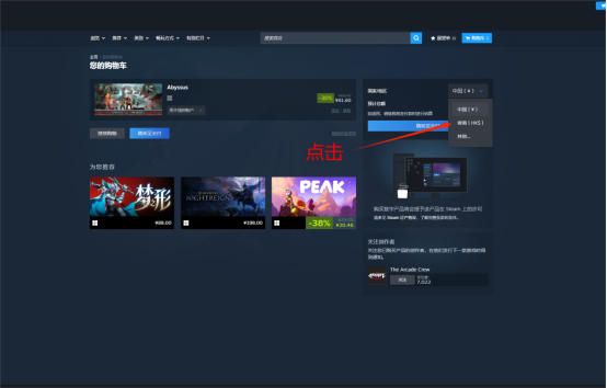 5. 打开Steam随便选择一个游戏加入到购物车并进入购物车页面。