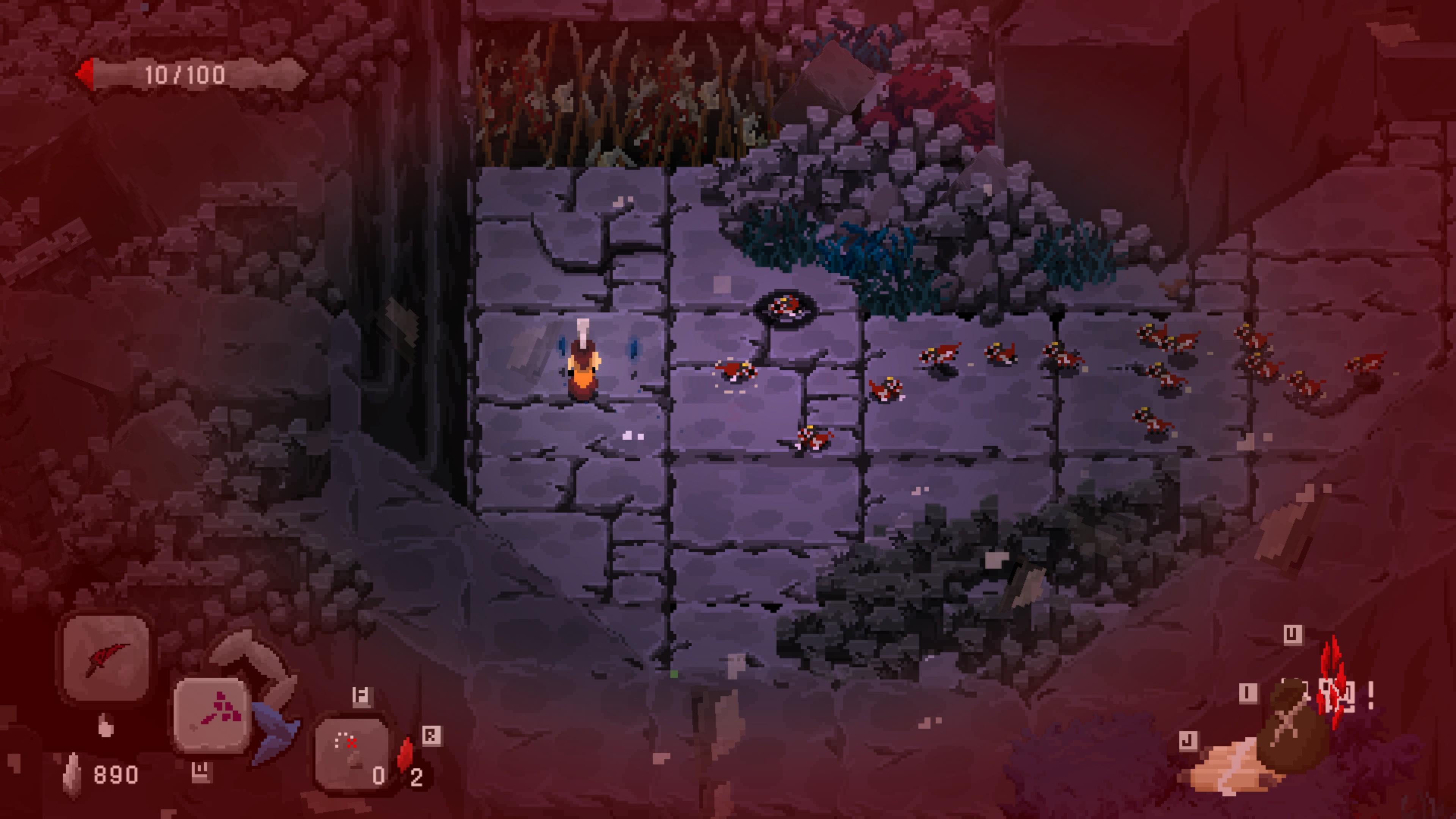 刹那间遗迹开始崩塌,四处的虫子向我袭来,我只能跑,按下Shift开始疾走,慌不择路下我掉进了更深的遗迹。