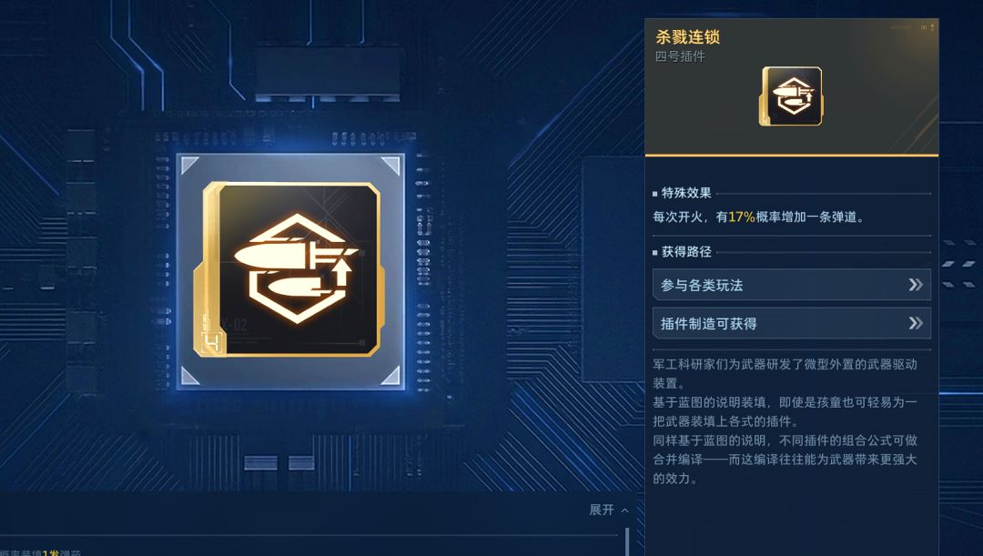 该插件的效果为每次开火都有17%的概率增加一条弹道。