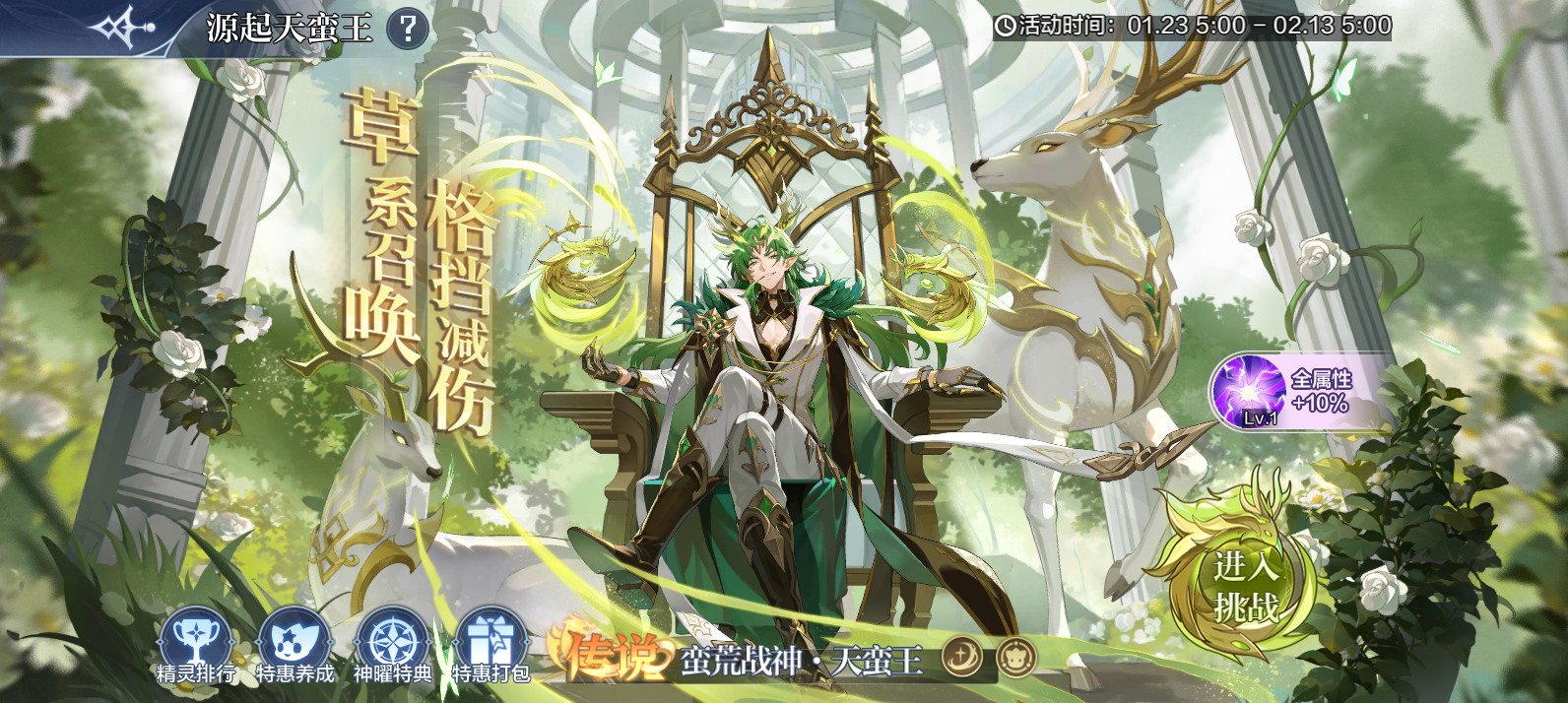 源起天蛮王之魂、源起天蛮王神器2选1、源起天蛮王全红星自选(79神钻/限购4次)、草属性全套橙+1、精灵满级礼包、满级星神礼包