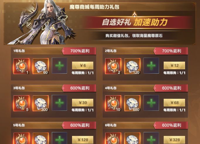 购买指定礼包可获得【魔尊原石】,可兑换绝世魔宠,绝世翎羽等超稀有道具