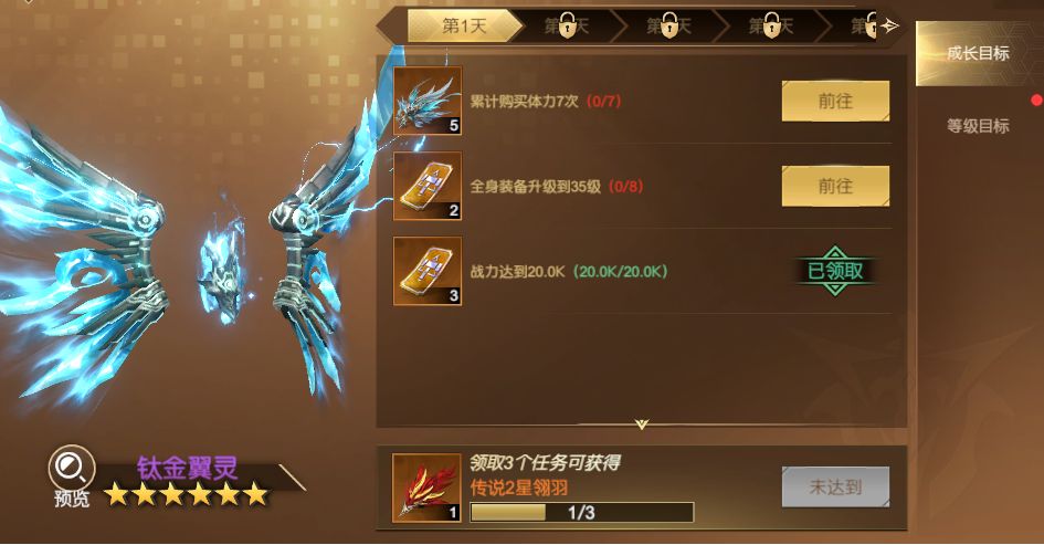 完成指定任务即可获得【自选翼灵】、【鸿瑞·翎羽】、【传说魔印】、【5星传说装备自选箱】等奖励!