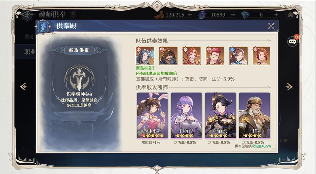 3、与供奉殿系别或职业相同的上阵魂师,会受到额外的供奉殿加成。