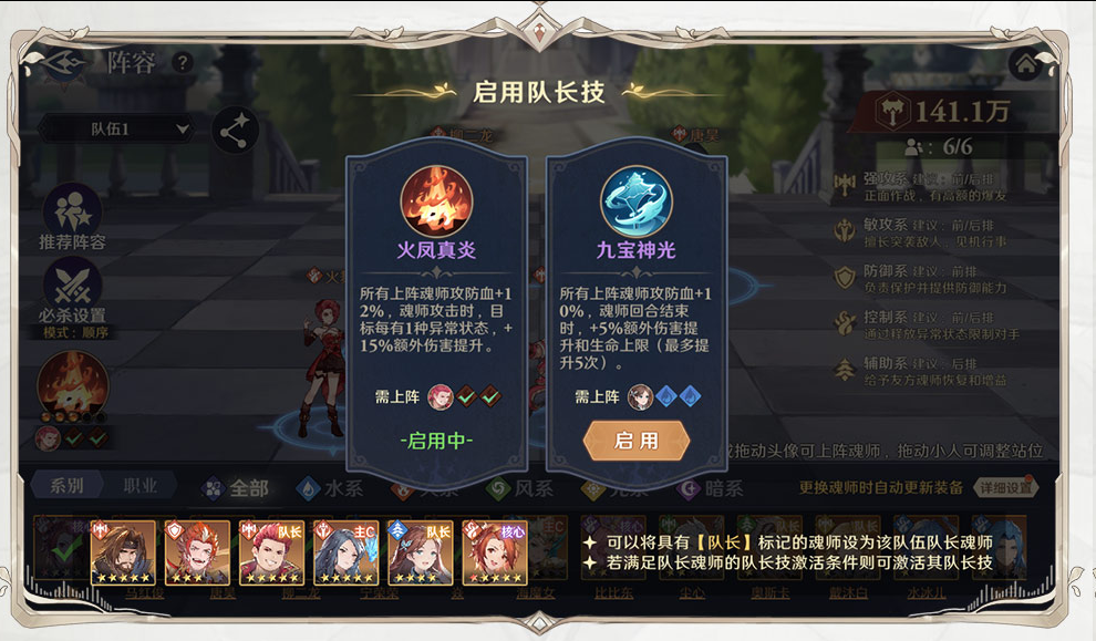 2、阵容中一定要记得上阵一个队长,队长技可以提升不少战力哦。