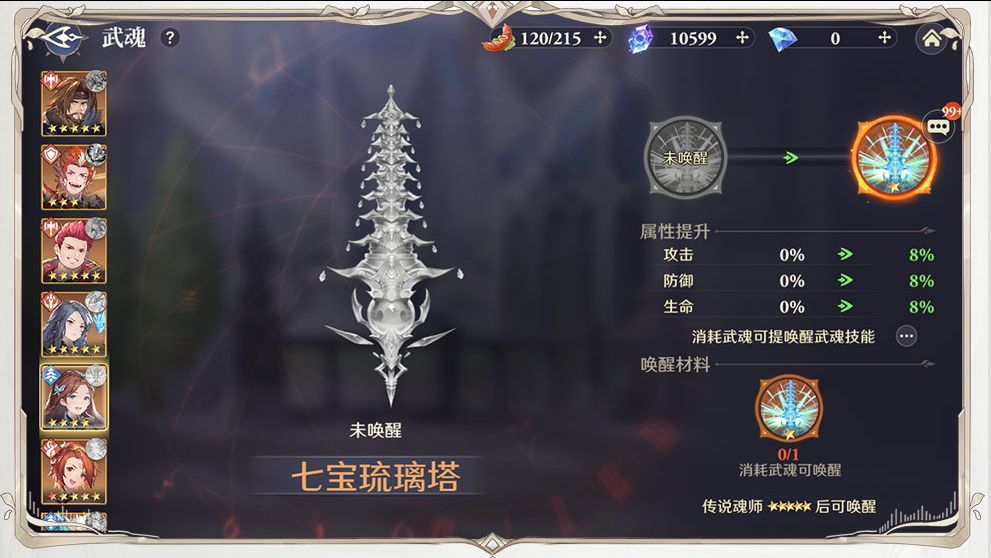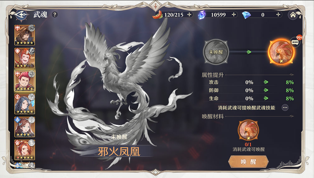 7、唤醒武魂:魂师星级达到5星之后可消耗专属道具唤醒武魂,获得百分比属性加成,战力加成较高。