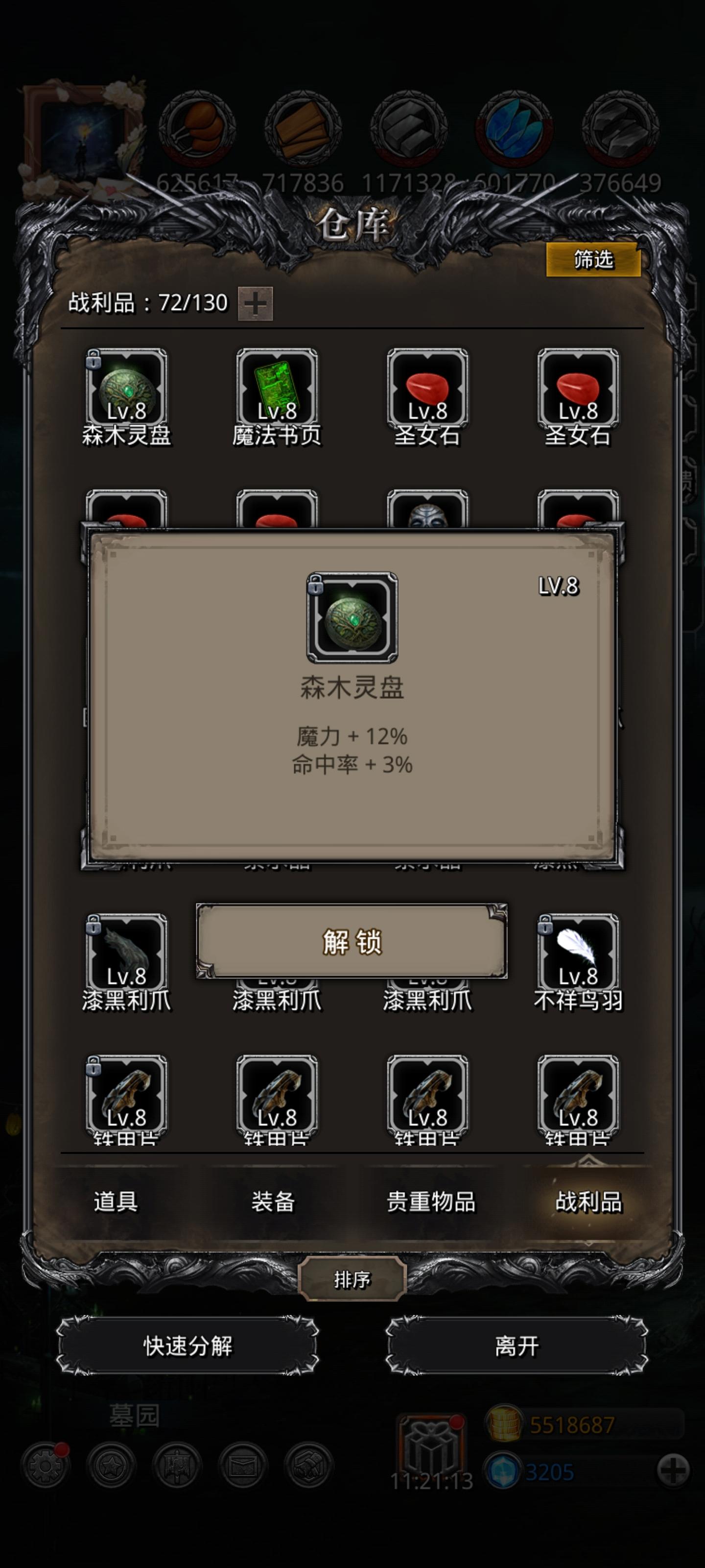 这是我全部家当了,哪些可以留,哪些可以当狗粮。刚过暗月神现在啥也打不过,需要买新出的战利品吗