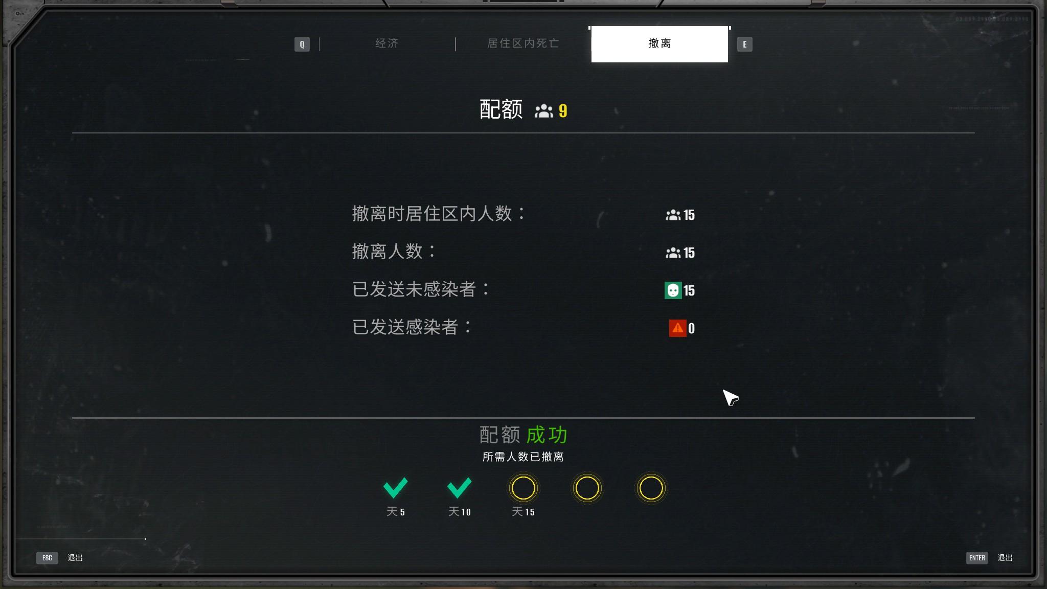 游戏中玩家会以天为基本时间单位来完成工作,每过若干天需要转移足够数量的健康人才能继续下一个周期,有时还需要操控无人机防守检查站,或是完成上司交代的各项任务。每天的时间并没有限制,因此玩家可以有较为充足的时间从事各项工作,时间压力并不大。