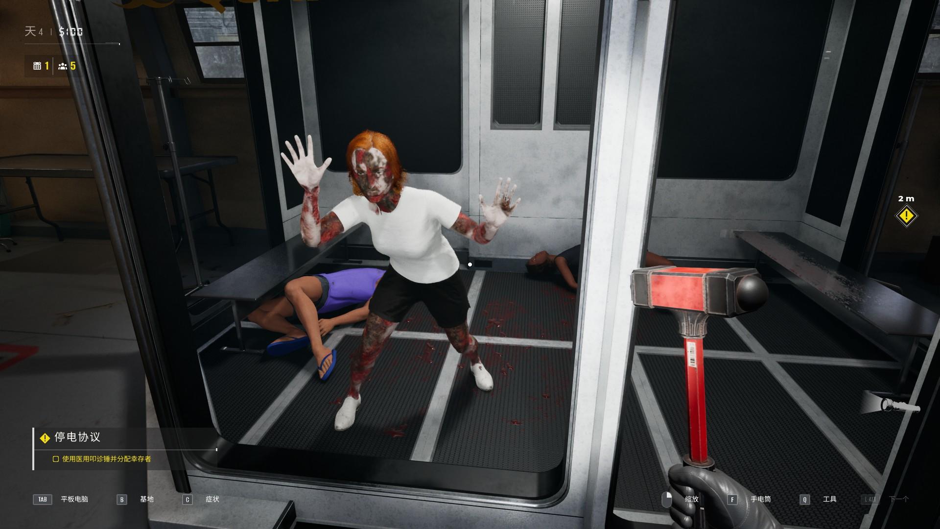 游戏中还会遇到各种任务,有些是主线任务需要在规定时间内完成,通常是下次转移之前;有些则是每天刷新的任务,针对的是当天接受检测的人,通常来说难度不是很高。而到了后期玩家甚至能在营地里养丧尸,每天将尸体喂给丧尸,转移时将丧尸送走可以获得大量金钱。