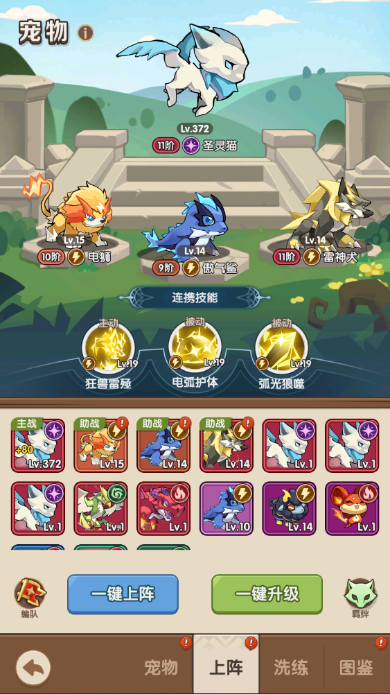 ②新增「宠物羁绊」和「宠物图鉴」上阵宠物总等级到相应条件,手动激活的羁绊就越猛,属性加成直接加加加到膨胀~~~