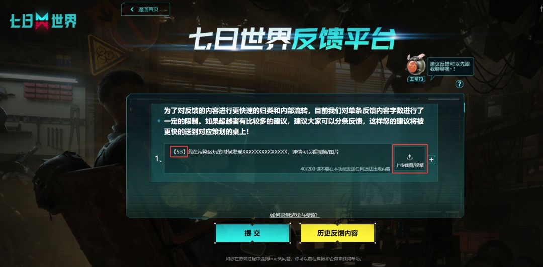 具体反馈格式参考:【S3】我在污染区玩的时候发现XXXXXXXXXXXXXX,详情可以看视频/图片