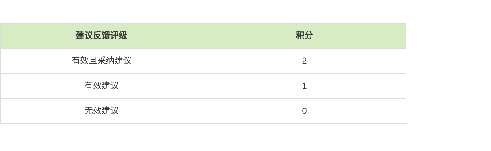 积分规则:超越者提交反馈后,经开发组评估为有效反馈则计为1分,如该有效反馈被采纳则计为2分。