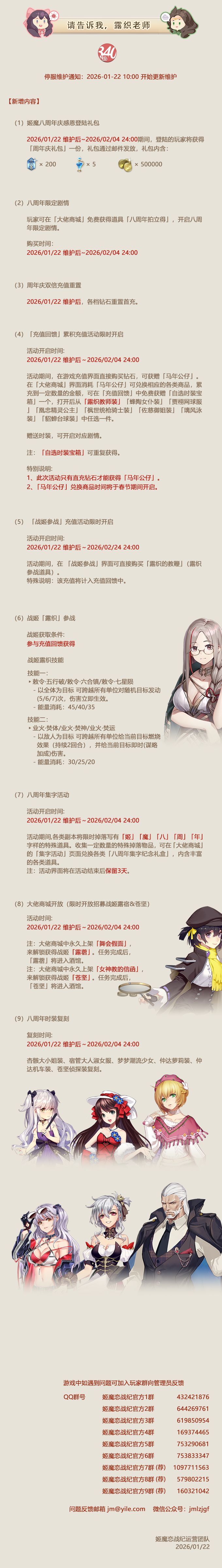 No.340 请告诉我,露织老师《姬魔恋战纪》01月22日更新公告
