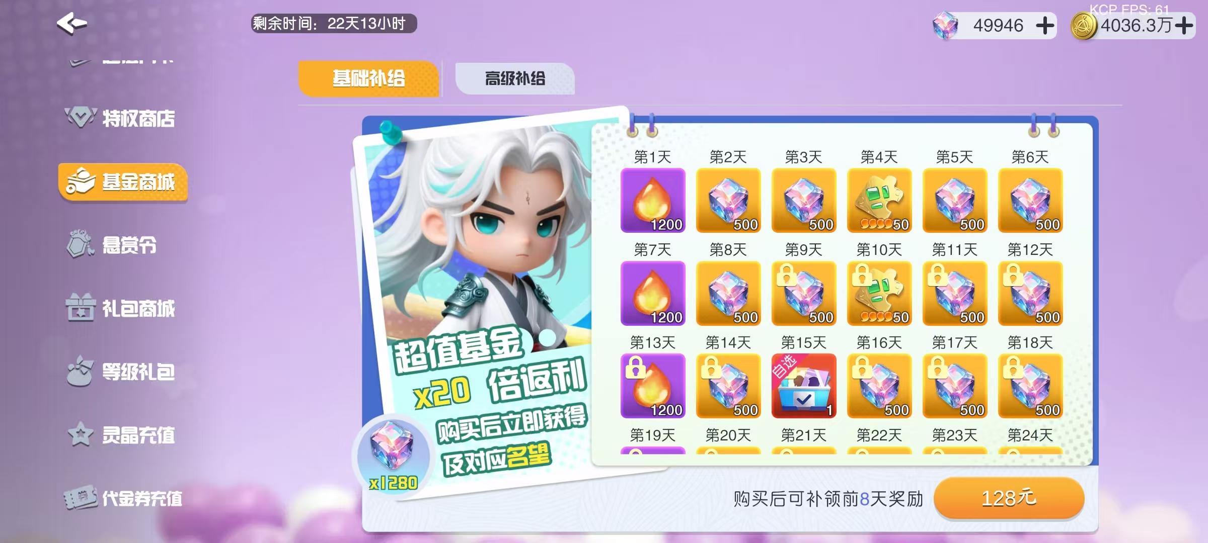 128补给和上面的高级战令问题类似,也就第一个月对氪佬有一些微小的价值。第二个月,这玩意儿除了1万多钻石,其它道具0价值。如果要形成稳定销售,第二个月需要调整道具供应,随机光暗战灵,或者4个橙道具或者一个随机红道具。如果要像一些游戏成为每周必买项目,第二个月开始灵露和高级战灵碎片也要换成其它实用道具。