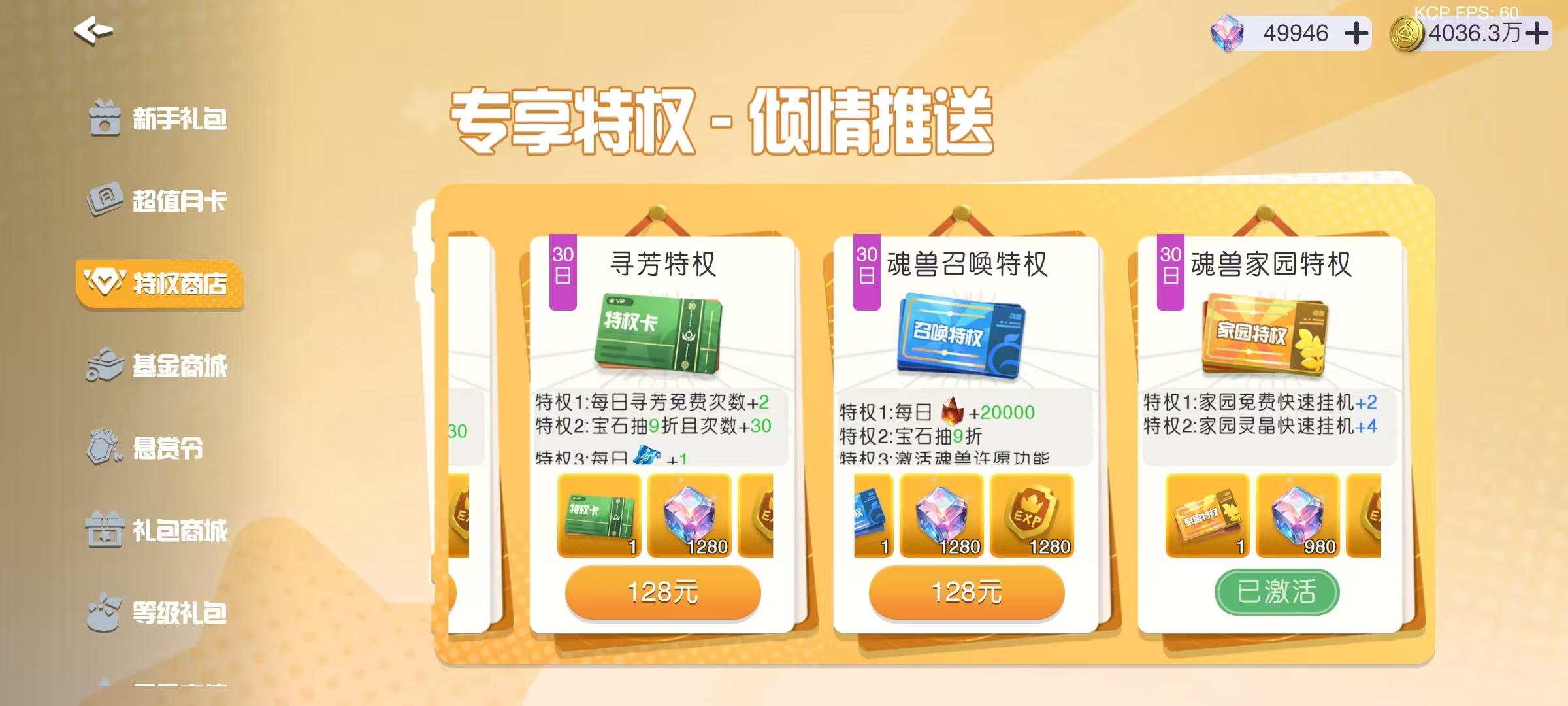 魂兽特权两个略微有点小坑,召唤结晶到魂兽家园开启一个月左右进度,每天收益在4万左右(按每天30小时产出计算),相当于20抽,加上免费的是21抽。然后我开了第二个特权,约等于每天多10抽,和第一个收益接近,但是一个月不到现在一个紫色魂兽已经满星大量溢出了,另外两个也快了。但是溢出之后,这个多余的魂兽碎片,只能换粮草和仙草,仙草溢出太严重了,粮草也没啥大用。也就是即使不开特权,魂兽家园两个月也会差不多紫色魂兽满星。那么开不开特权,收益没啥大区别,因为一个月不到就会出现收益边际效应。而且魂兽不上场,毛收益没有,魂兽和战灵的成长性比起来,差的不是一星半点。即使是氪佬,氪这玩意儿,还不如氪其它能直接带来红道具的项目。这个特权谁氪谁知道,很坑。优化方案建议一方面魂兽增加部分战灵属性,同时特权两者合并,最后妥善解决紫色魂兽碎片溢出收益过低问题。另外一个特权位置给到乾元剑。乾元剑也上场,但是收益比魂兽高太多了。