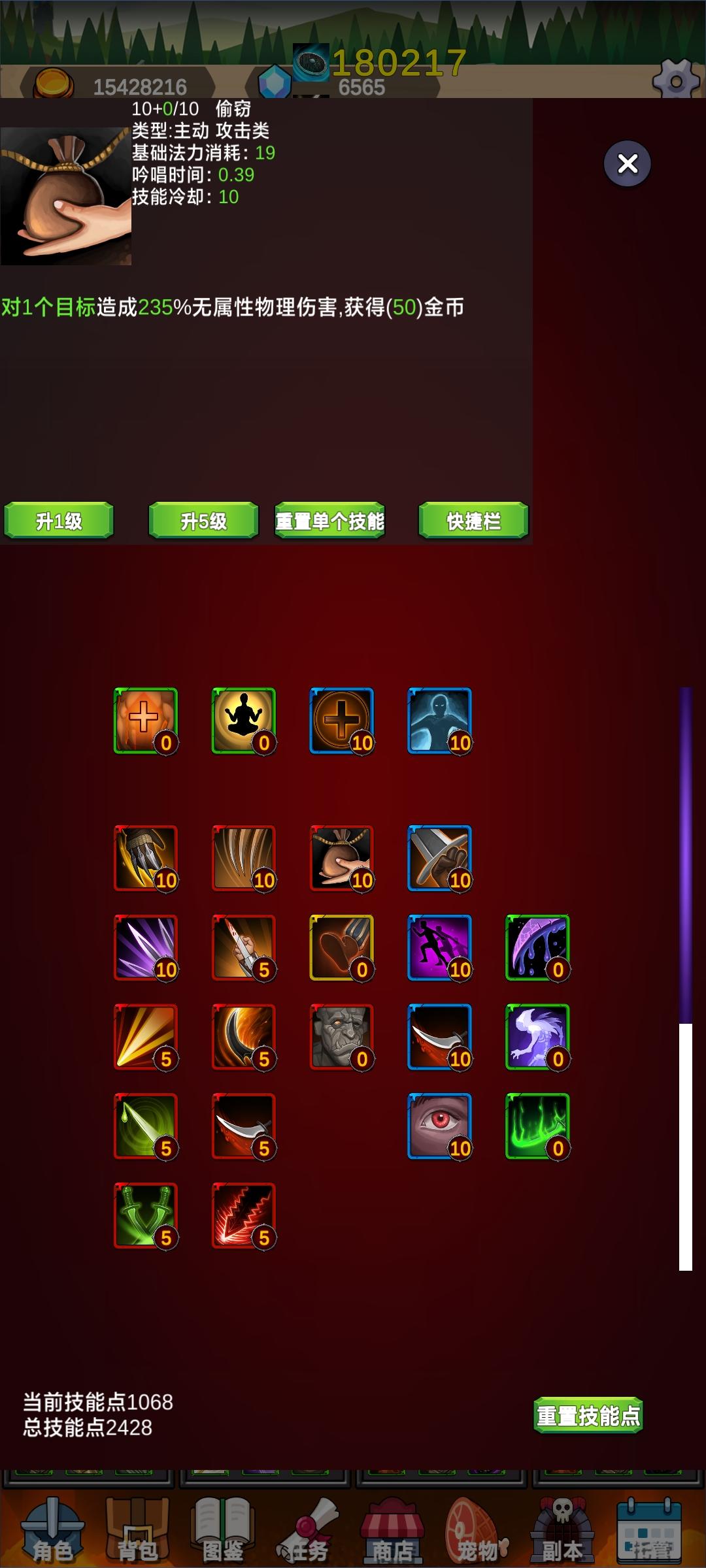 金币:金币是游戏内的主要货币,强化、升级、升华、洗炼、购物都需要用到金币,但是获取途径仅有两种,一是猎人的偷窃技能(如图三),满级偷窃单次50金币,可谓杯水车薪,在此pass掉,二是出售野图、副本出产的各种材料。在练度不足以挂机魔力之森刷取金币的时候,可适当购买一部分金币帮助发展,后期急需金币时也可购买一部分。(PS:随等级提升,金币的量也会提升)