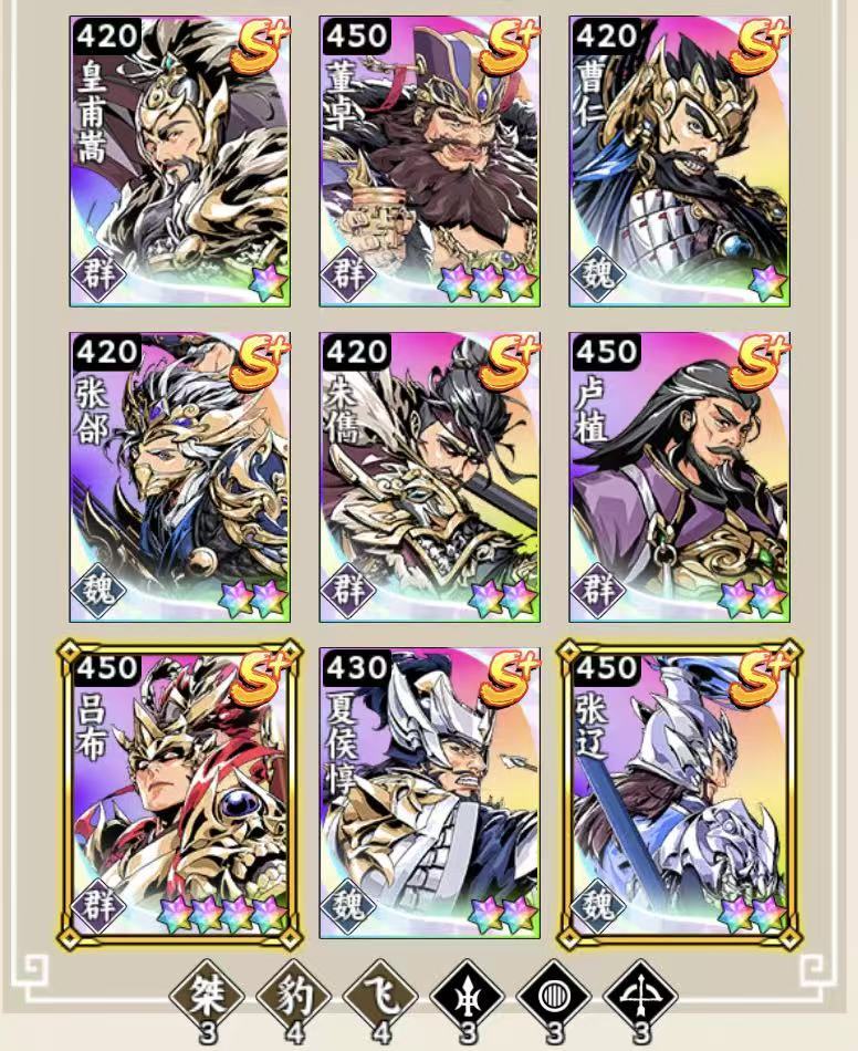 看似是魏国大虎豹骑体系,实则群熊称霸,队伍里一半人是群雄角色
