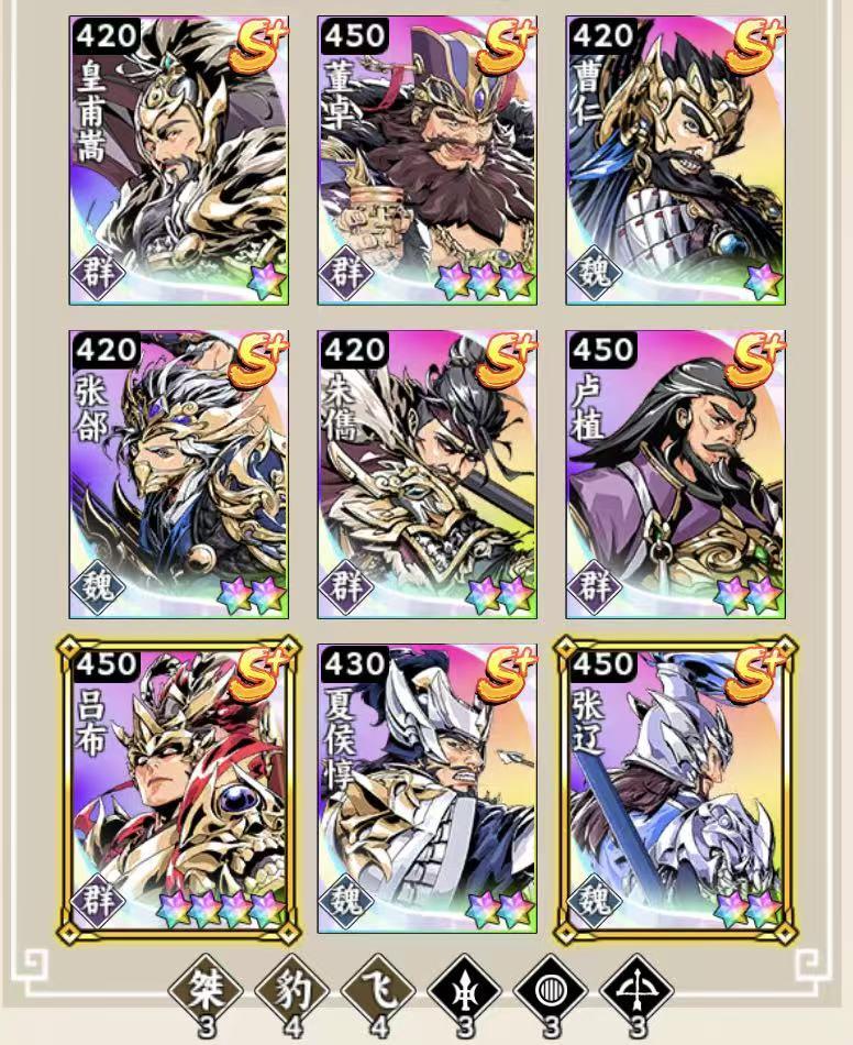 五虎+桀,看似关羽、吕布、张辽三巨头抱团,但实际吕布没有群熊的加成,功力大减。三国猛将粉之爱