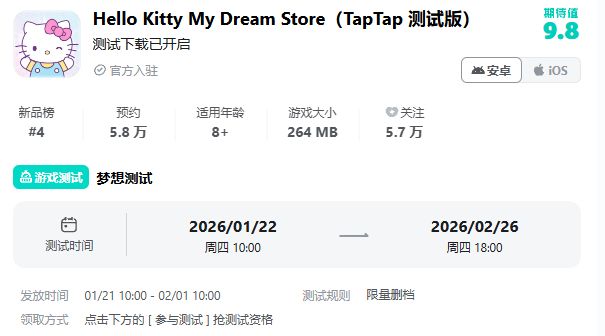 宝宝们注意啦!「梦想测试」将于2026年1月22日10:00正式启程,并于2月26日18:00结束。本次测试将在1月21日10:00开启预下载。
