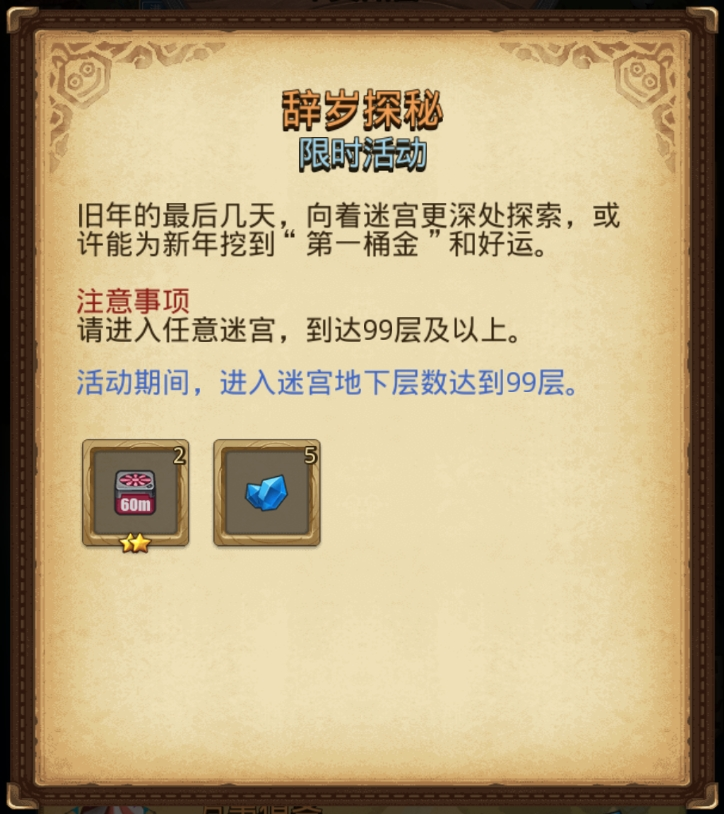 活动期间进入任意迷宫地下层数达到99层。