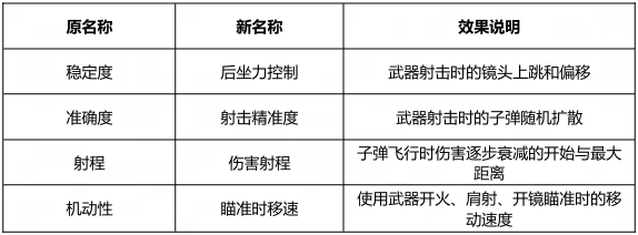 我们将对枪械属性描述进行优化,使其更贴合实际效果,具体改动如下: