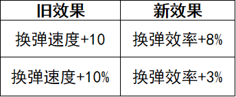 通过这次调整,枪械在搭配各类模块对换弹的养成数值后,实际的换弹时长会比之前更短。在替换成换弹效率后,枪械的加成数值相比之前有进一步提升。