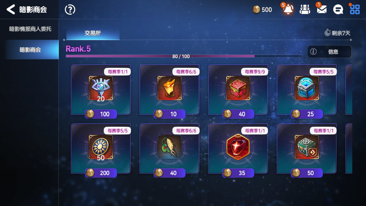 通过暗影情报商委托奖励获得暗影硬币,可使用暗影硬币于交易所中购买智慧之眼、金光传承石、星辉纪念硬币、魔格罗拉、上级转换石、装备炼制石等海量养成资源。