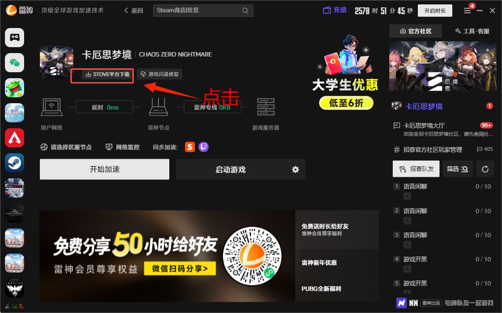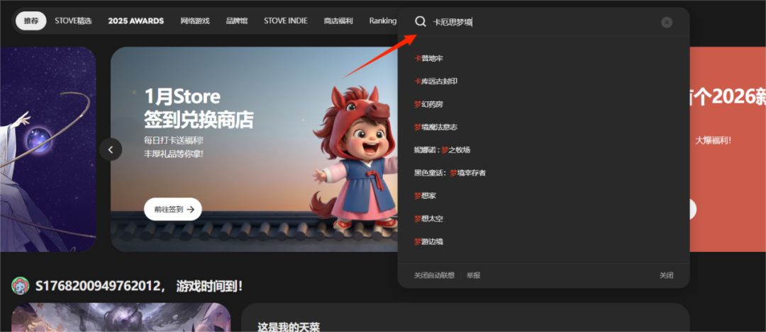 5. 安装完成进入STOVE平台搜索“卡厄思梦境”。
