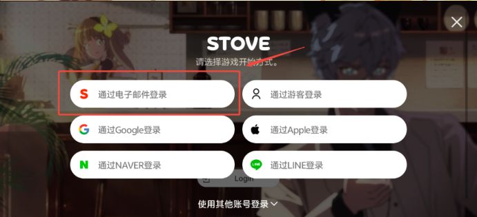 2. 手机端打开安装好的游戏,点击STOVE电子邮件登录。