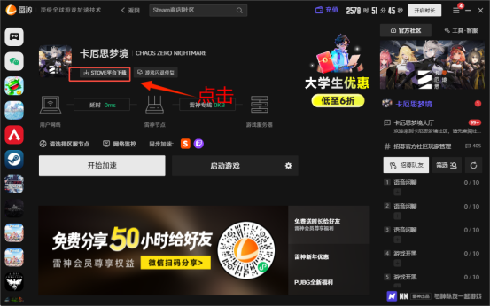 注:如果加速器内提示游戏未安装时,可前往雷神官方网站下载雷神加速器(应用商店版本的加速器暂不支持此功能)