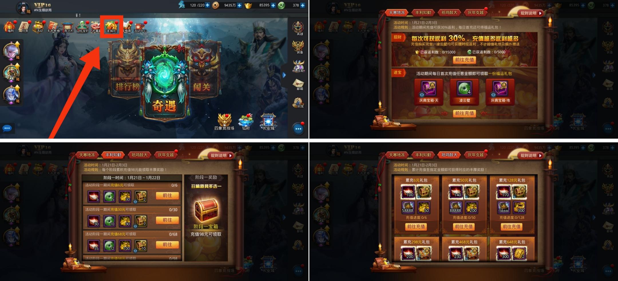 - 卡到活动最后一天(2月3日)集中花费元宝以及消耗腊八粥,在这之前通过签到、做任务等尽量多获取元宝和腊八粥;