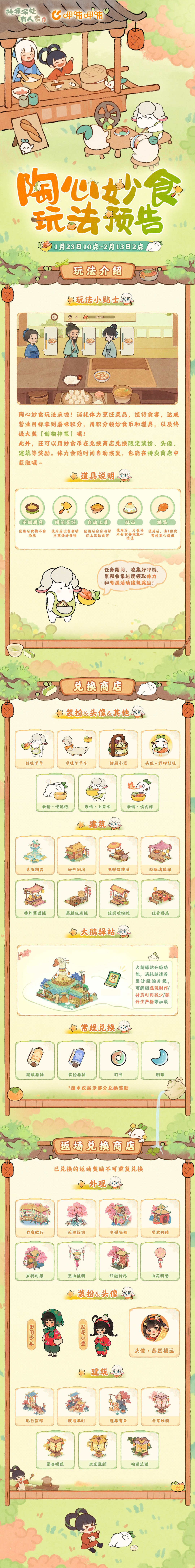 听说好多山民很怀念做餐食的日子?这就来了,「陶心妙食」玩法将于1月23日回归!
