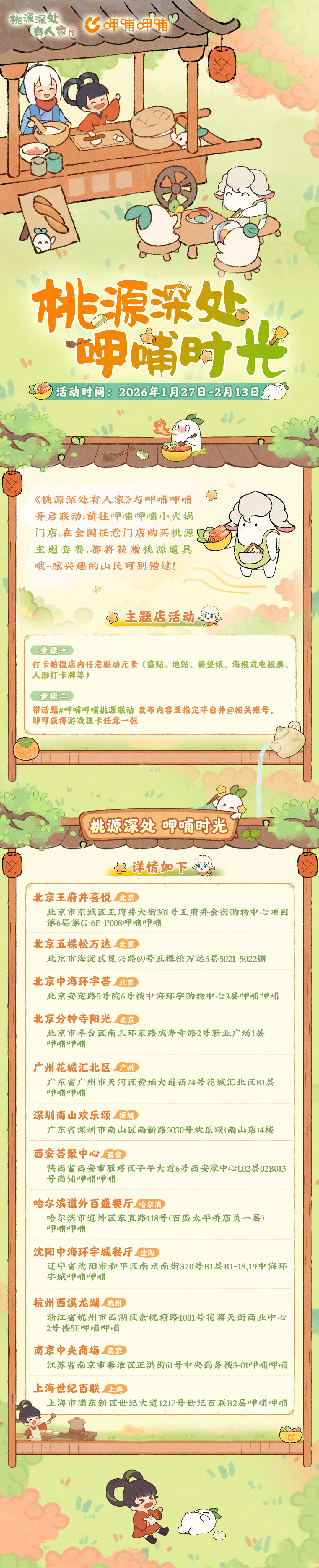桃源×呷哺呷哺联动套餐也将限时上线各大门店!前往主题门店参与打卡活动还有机会获得周边奖励!