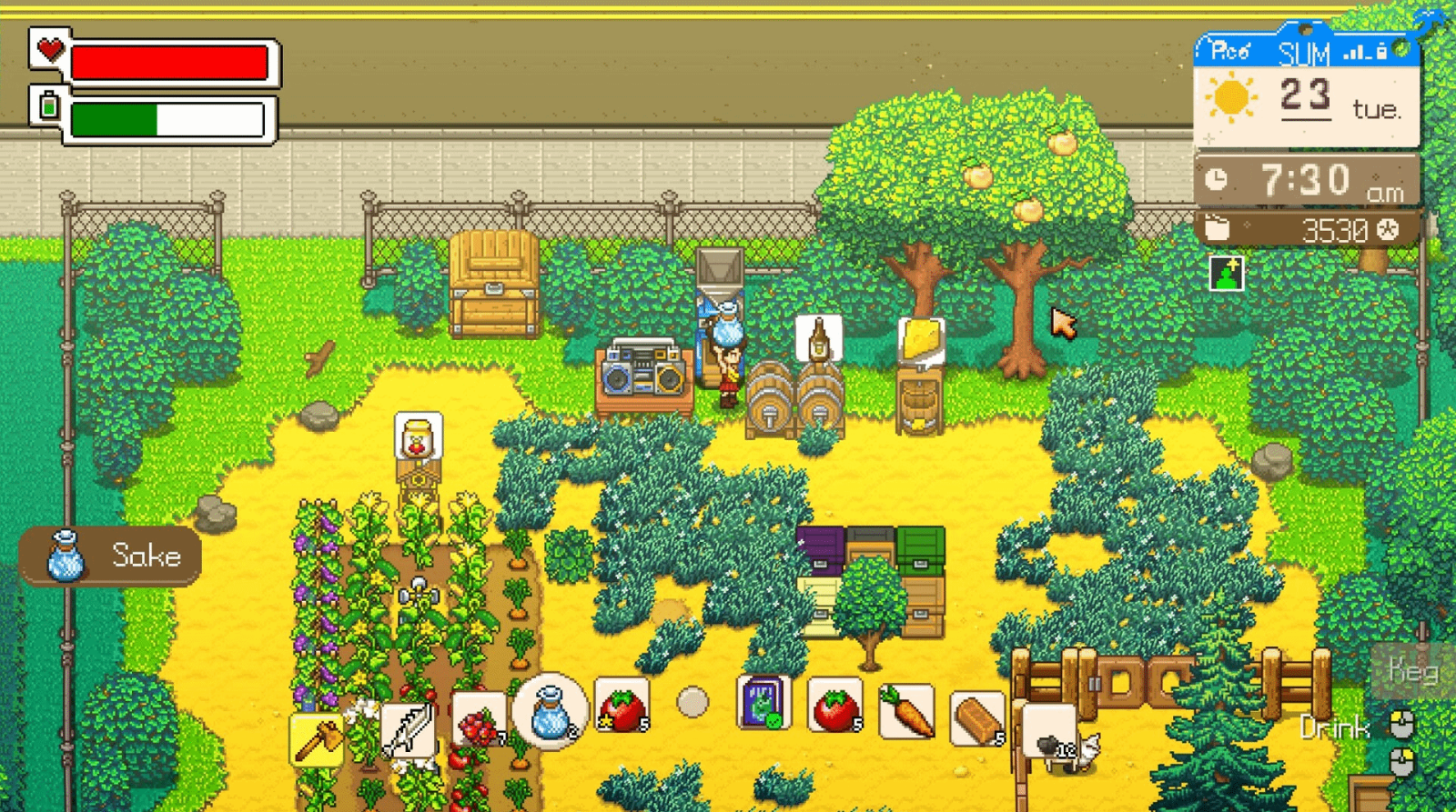 这款游戏的像素画风与角色设计,和《星露谷》堪称异父异母的亲兄弟,但玩法内核却截然不同。玩家告别鹈鹕镇的田园牧歌,来到充满放克气息的阿波罗城开启新生活。传统开荒种田升级为DIY 花园打造,下水道藏着怪物可随时刷怪冒险,还能和城里新潮古怪的NPC相约咖啡馆、逛公园,解锁别样都市休闲体验。